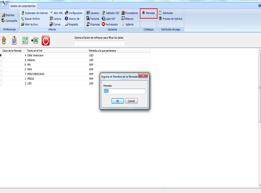 CatalogosEn esta opcion tenemos el catalogo de monedas.