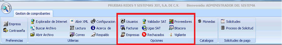 Este modulo es el mas importante ya que se encuentran los menus donde podremos relizar las validaciones y donde se gestionan tanto las facturas validadas