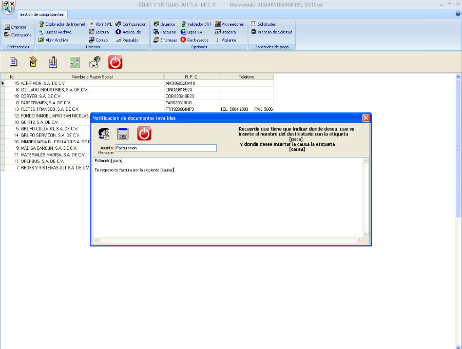 como las rechazadas, tambien tendremos las configuraciones para cada una de las empresas que esten dadas de alta en el sistema y la gestion de nuestros proveedores.