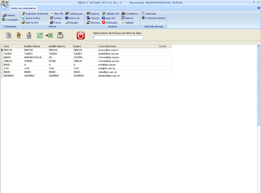 El boton de usuarios nos mostrara el catalogo de usuarios del sistema