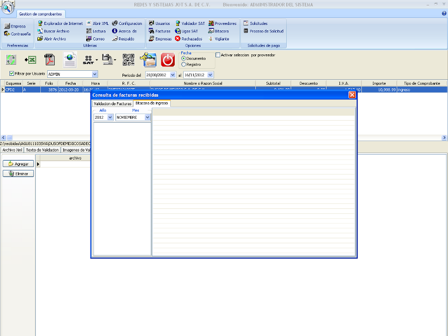En la segunda pestaƱa podremos observar la bitacora de ingreso de facturas de papel o CBB por medio de un filtro de fechas. |
