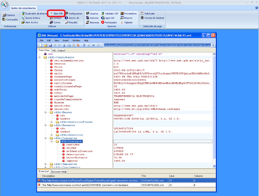 Herramienta para abrir archivos xml de una forma legible y amigable.