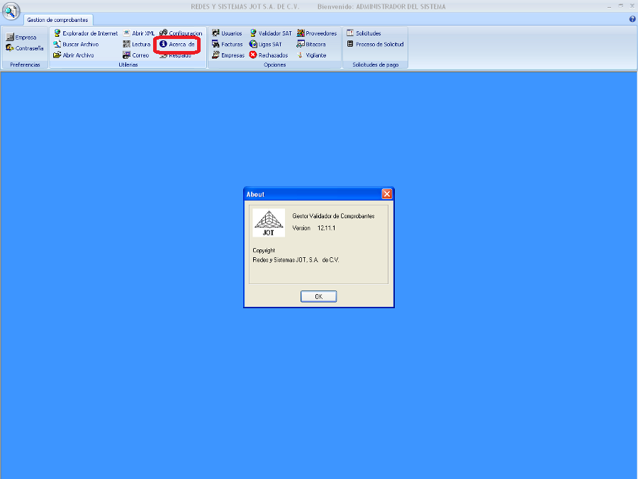 Este boton nos mostrara la version de nuestro sistema de validacion.