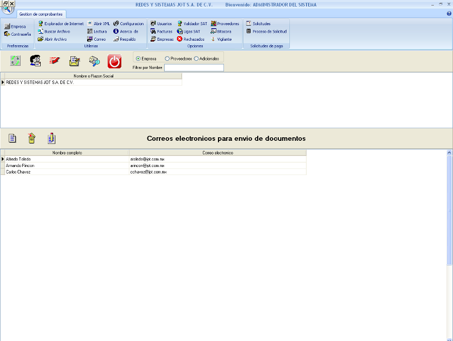 el cual separa los correos por proovedores, de nuestra empresa y adicionales.