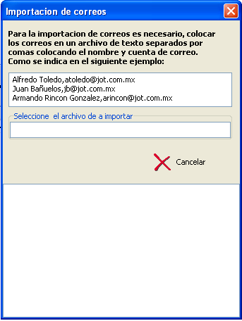 --Este boton permite dar de alta correos electronicos mediante la importacion de una la lista de correos electronicos ya sea de la empresa, proveedores o adicionales, en el caso de los proveedores se pueden dar de alta al mismo tiempo que se importa la lista de proveedores.